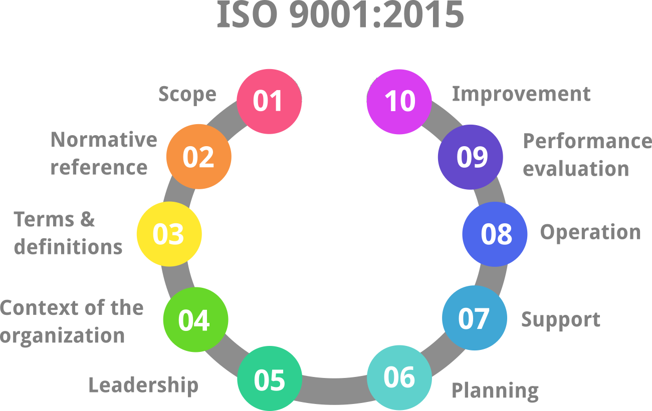 ISO 9001 defines a structured approach to quality management, focusing on:
